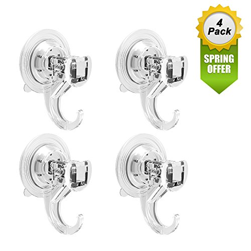 Shower Hooks, Quntis Home Kitchen Bathroom Wall Hooks, Plastic Power Lock Vacuum Suction Cup Hook Razor Holder Wreath Hanger Organizer for Towel Bathrobe Loofah Chrome Coat Bag Key Caps, 4 Pack Clear