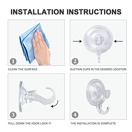 - [REUSABLE SUCTION CUP] Design with the reusable suction cup, just release the lock to remove the suction hook, and than clean the suction cup, than you can install the hook on another smooth place.