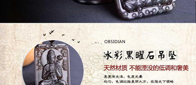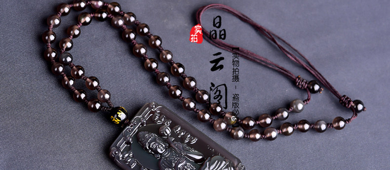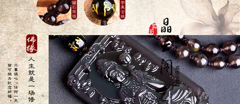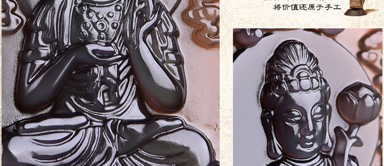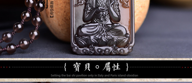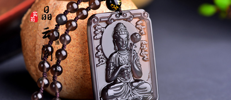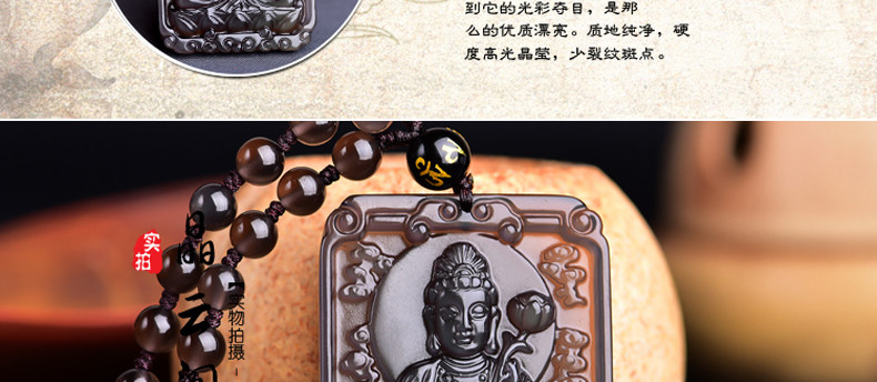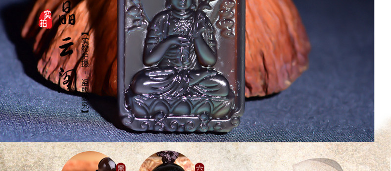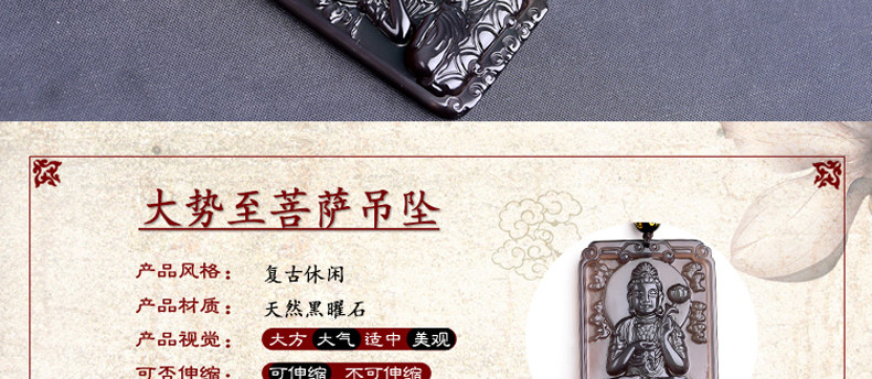 开光天然冰彩黑曜石大势至菩萨 生肖马本命佛守护神吊坠男女项坠