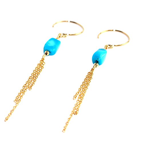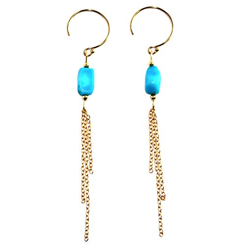 -. Title : Handmade 14-kt Gold-Filled  Brass multi strand chain earrings with Tumbled Gemstone