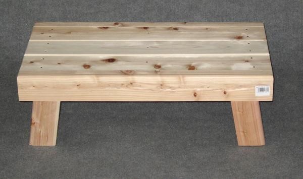 香りのよいヒノキ素材を使用して作られた、低めの足付きスノコです。低めなので玄関に置いて踏み台にしたり、プランターを置いたりするのにお勧めです。
