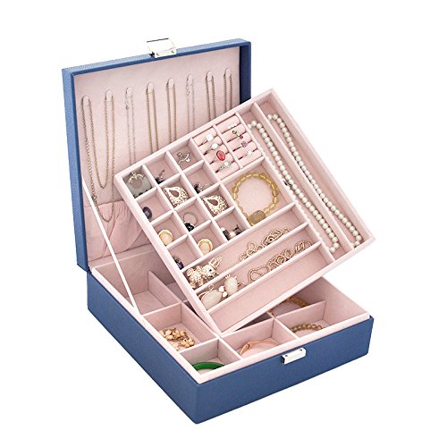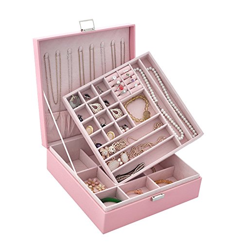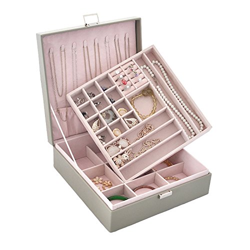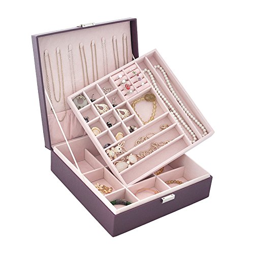 -. Title : Lavie 2-layer Square-shaped Jewelry Box Faux Leather Jewelry Organizer Storage