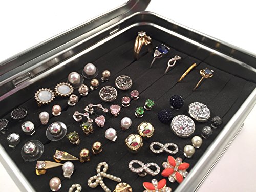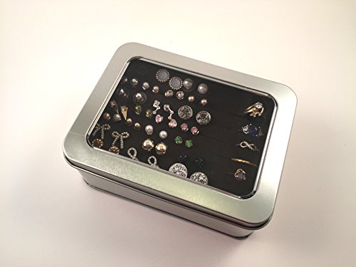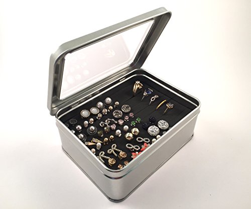 -. Binding : Kitchen -. EAN : 0731236597193 -. Feature : Light weight Tin Jewelry Box / Clear Top to view items inside / Holds Earrings and Rings / Great for Travel -. IsAutographed : 0 -. Label : Never Lost Earrings -. Manufacturer : Never Lost Earrings -. PackageQuantity : 1 -. ProductGroup : Home -. ProductTypeName : HOME -. Publisher : Never Lost Earrings -. Studio : Never Lost Earrings -. Title : Tin Jewelry Box, Earring Holder, Travel Jewelry Case, Keep Earring BACKS ON ! -. UPC : 731236597193