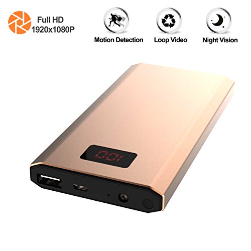 -. Title : Hidden Camera Power Bank, KAMRE HD 1080P 10000mAh Power Bank Nanny Cam Night Vision Motion Activated Spy Security Camera with Digital Power Display, Golden