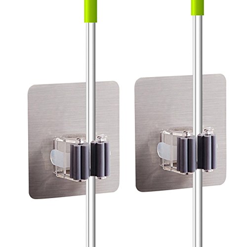 ★ Self Adhesive Mops Holder: Made of High Quality PC + silicone + no trace paste, it is washable and reusable after washing.
