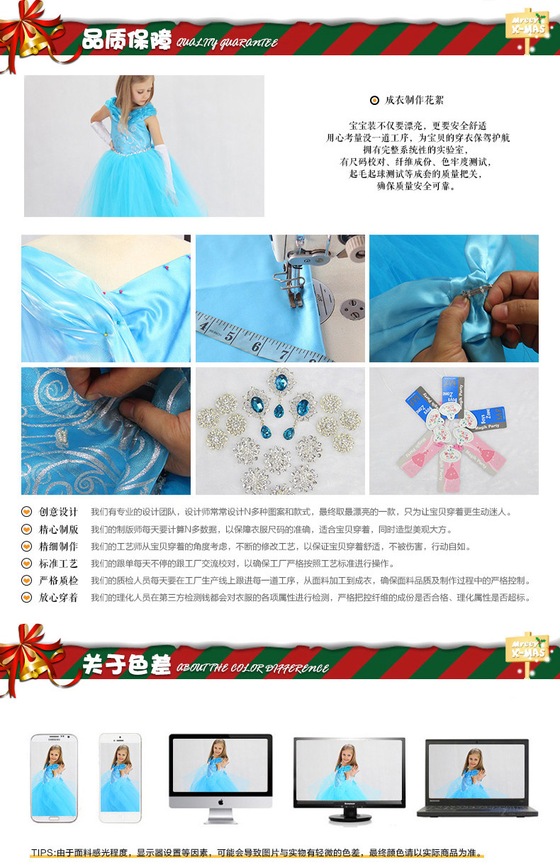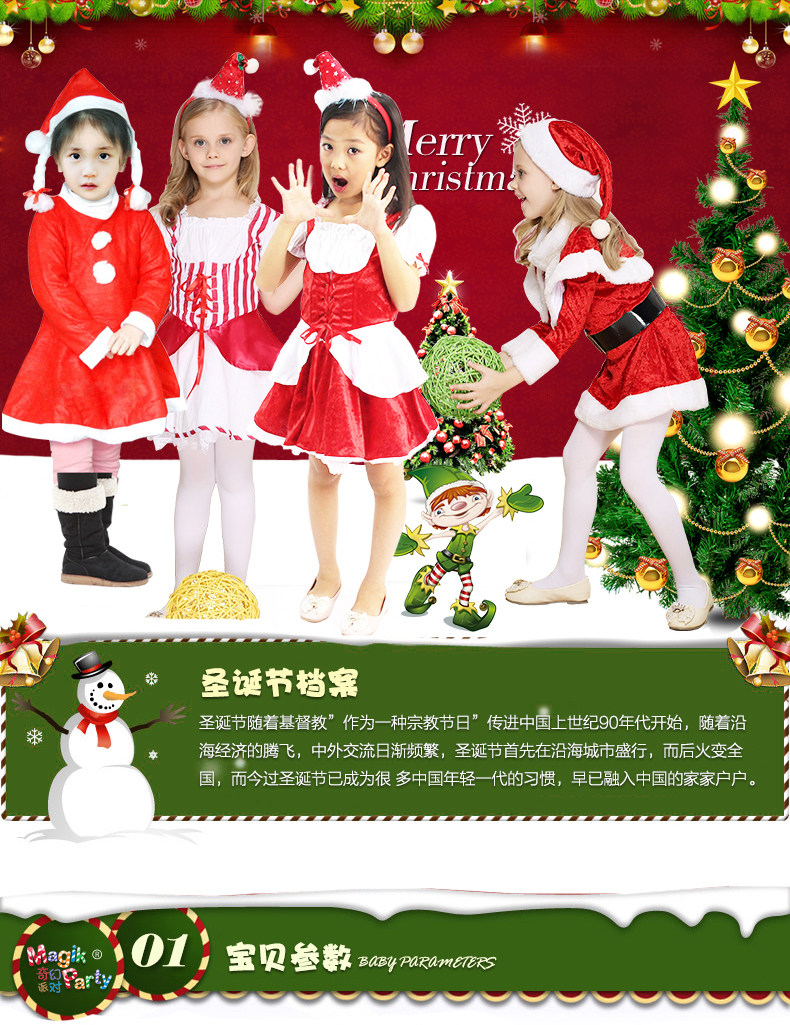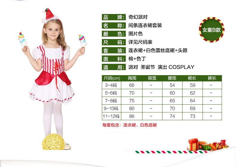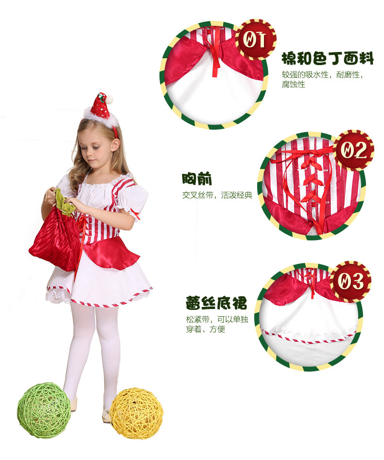 Cosplay儿童演出服装 角色扮演 女童圣诞节条连衣裙