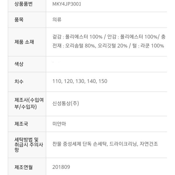 보온성이 탁월한 남녀공용 제품의 솜털80% 깃털20% 덕 다운 점퍼 입니다.