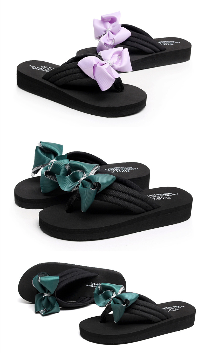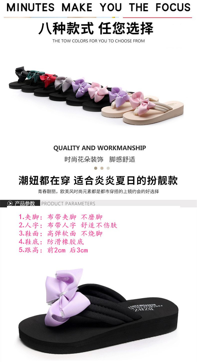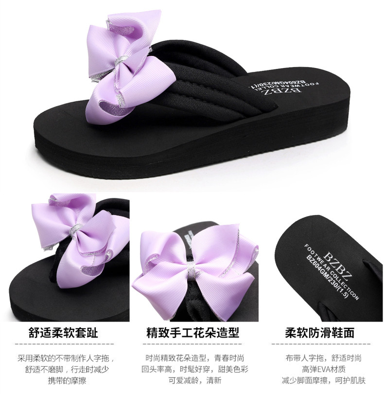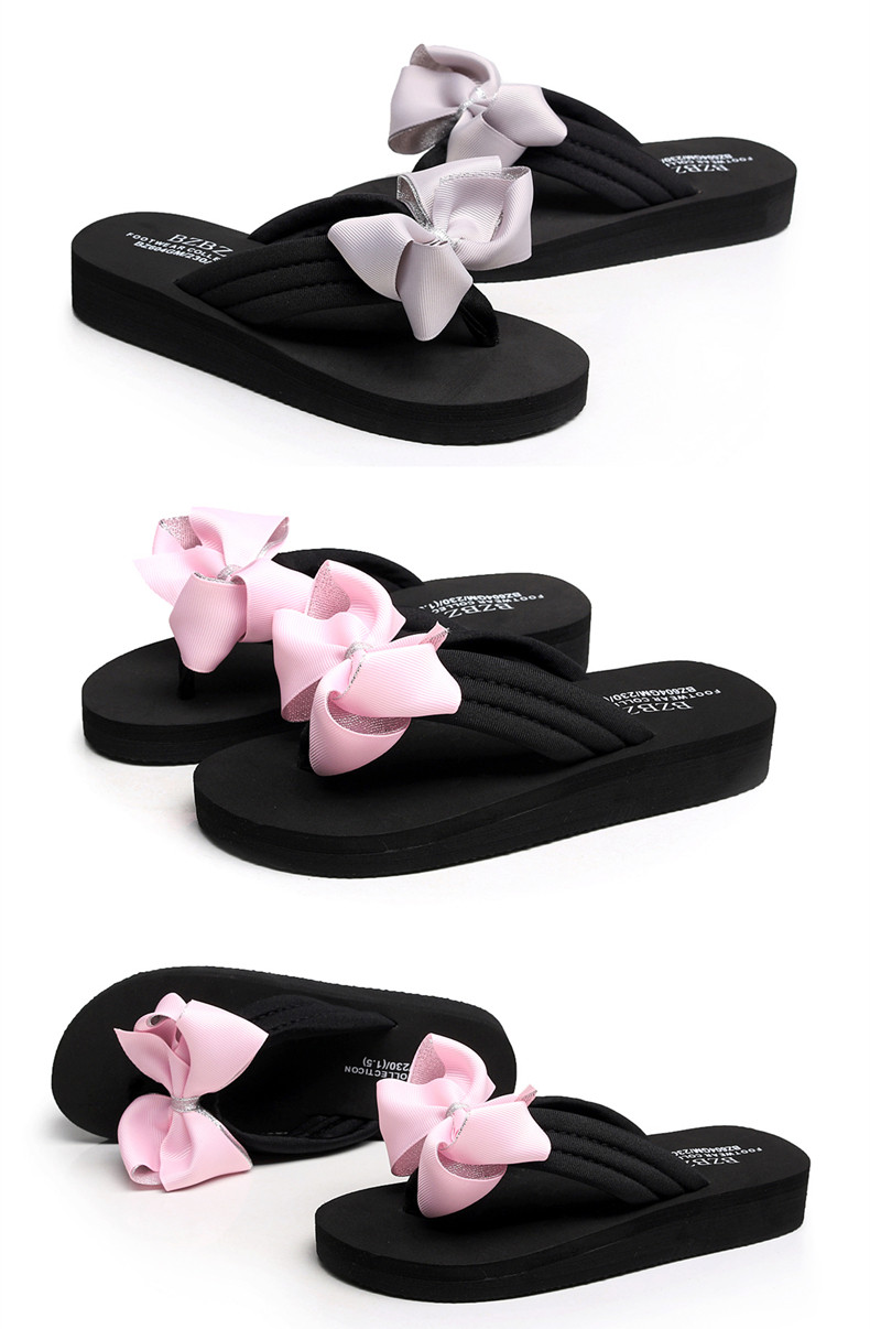 拖鞋女夏季时尚新款蝴蝶结人字拖平底沙滩拖鞋防滑厚底外穿凉拖鞋
