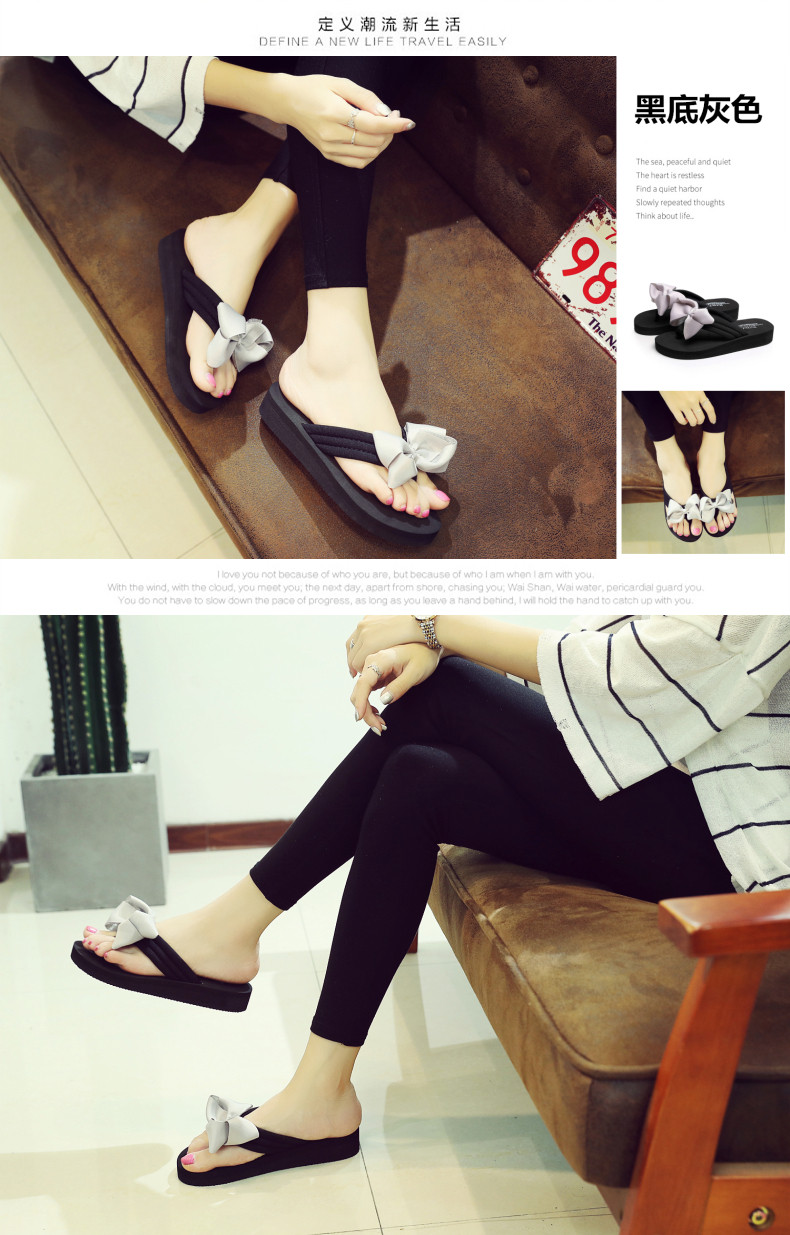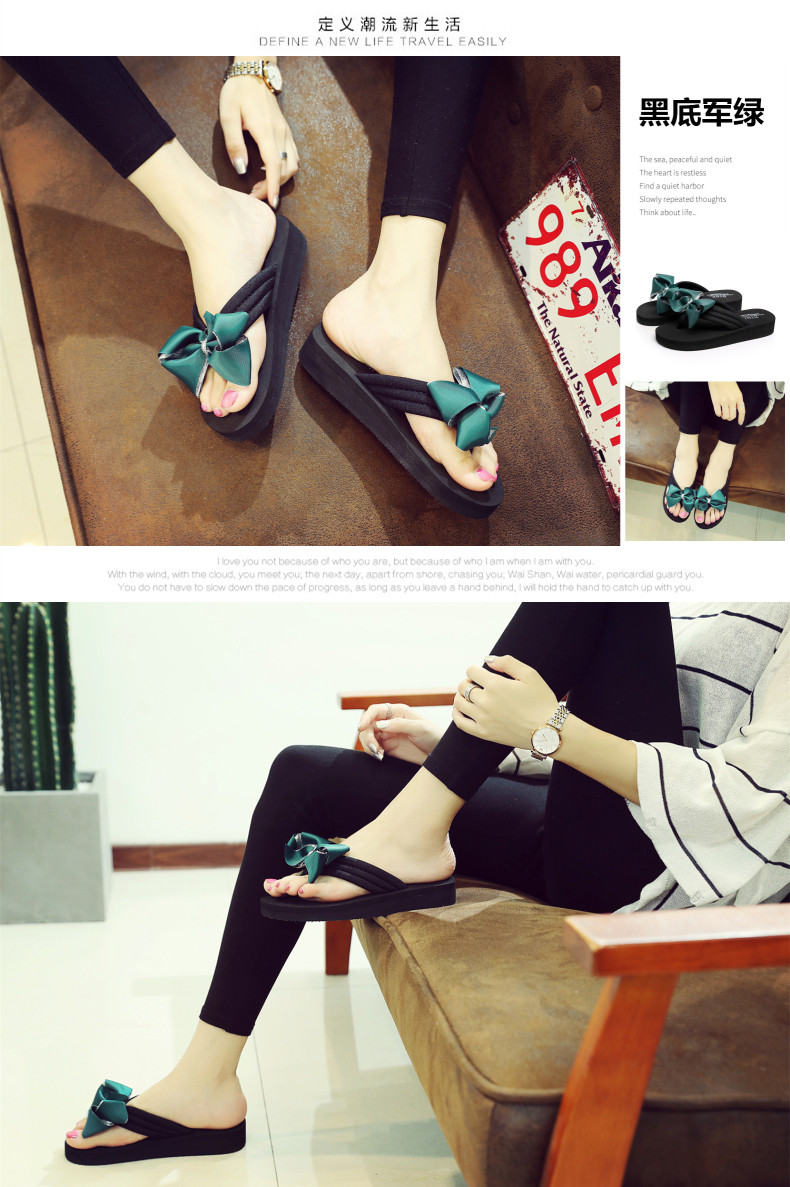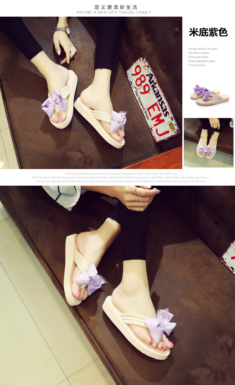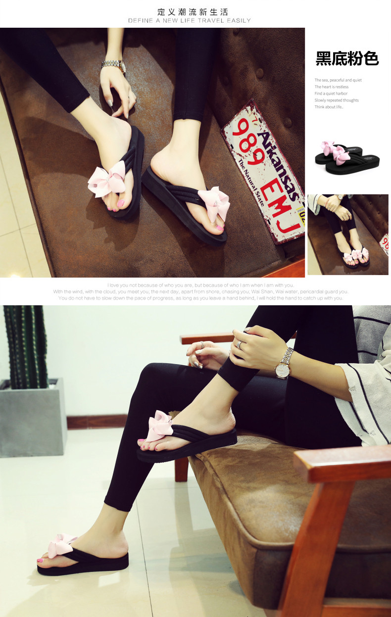 拖鞋女夏季时尚新款蝴蝶结人字拖平底沙滩拖鞋防滑厚底外穿凉拖鞋