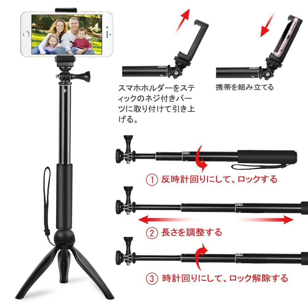 It is a folding type self-shooting stick that you can shoot with just pressing a button, unnecessary to charge.