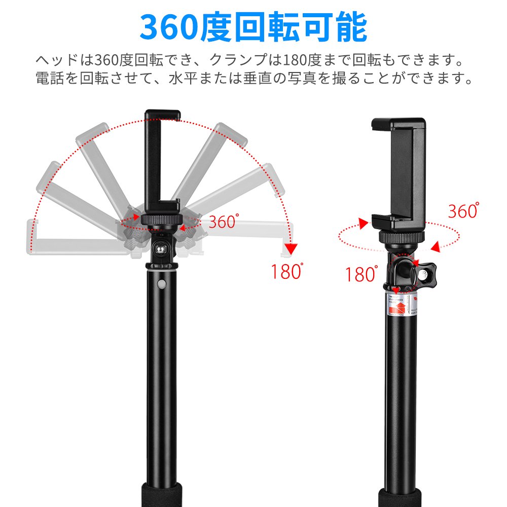 The head of the wireless self-shooting stick can rotate 360 degrees to capture the shot.