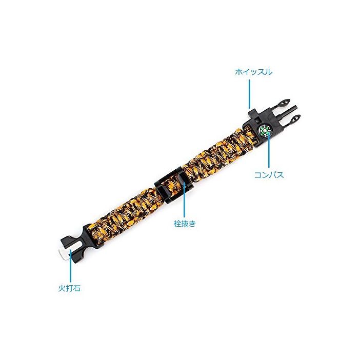 원본상품명: LIKIQ 多機能サバイバルブレスレット コンパス/ホイッスル/火打石/バラコド/栓き/スクレパ付き