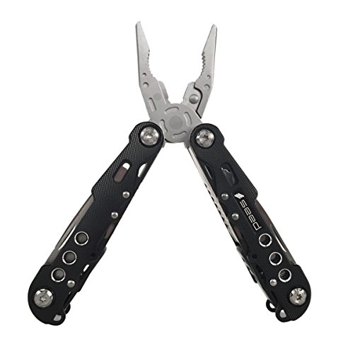 Studio : Seed Publisher : Seed Binding : Misc. Product Description 14 INTEGRATED COMPONENTS Needle Nose Pliers Regular Pliers Wire Cutter Nail File Small Flat Head Screwdriver Medium Flat Head Screwdriver Large Flat Head Screwdriver Phillips Screwdriver Small Knife Large Knife Can Opener Bottle Opener Saw Fishing Hook Remover