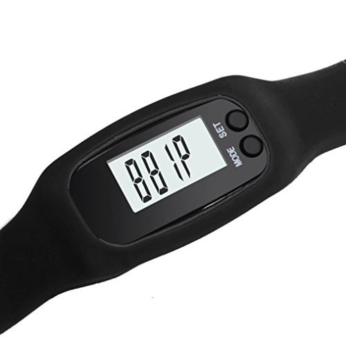 -. Feature : 100% New and high quality / Size: approx. 4.5 x 3.4 x 2.2cm Material: ABS+Silica gel / LCD display, easy to read Power by: 1x button cell (battery included) / Steps count from 0 to 99,999. Low battery consumption and Auto Sleep Auto detect waist movement while jogging / Function: step counter, distance & calorie calculation