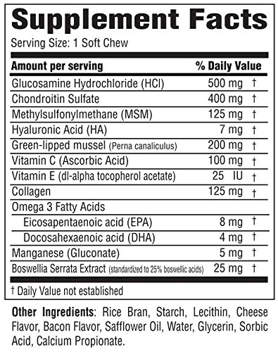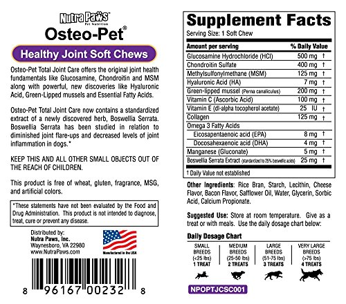 New! Osteo-Pet Total Joint Care is Now in Soft Chew Form! Glucosamine Chondroitin, MSM, Hyaluronic Acid, Green Lipped Mussels, Collagen, Vitamins C & E, Boswellia Seratta Extract and Omega 3 Fatty Acids in a soft chew formulated for Dogs.