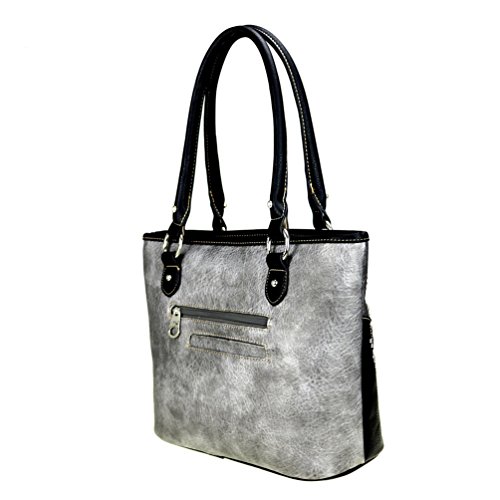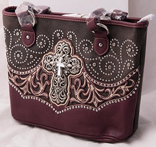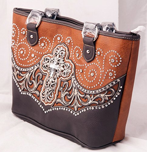 -. Feature : Size: 14.5 x 4.5 x 10.25 (9" drop) / Made of PU leather , this western handbag has: A large Cross Medallion on the front, Cut-out boot scroll, Embellished with silver studs and rhinestones, A zippered enclosure on the top of the bag, A zippered pocket on the inside back and 2 open pockets on the inside front, / Single compartment divided by a medium zippered pocket, An open pocket and zippered pocket on the back, Metal feet on the bottom for protection and stability, Double handle, 14.5 x 4.5 x 10.25 (9" drop) / Montana West is one of the fastest-rising names in the fashion world, and we carry all their latest products at competitive P.R.Ices. You can turn to us for handbags, wallets, flip-flops, and other accessories from this up-coming western brand.