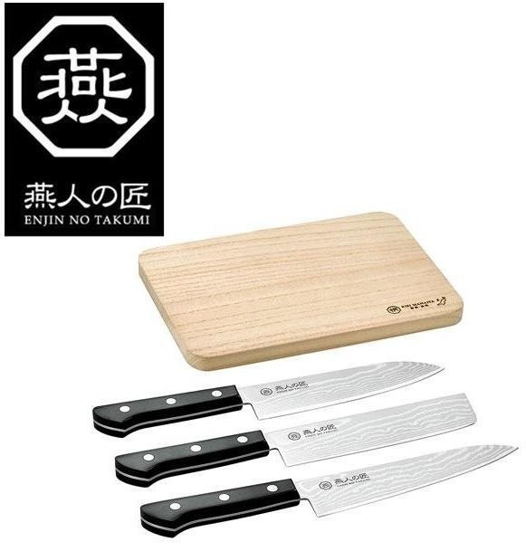 | 優美な波紋と鋭い切れ味が特徴の包丁3本と新潟県加茂の桐タンス職人が1枚1枚丁寧に仕上げた桐まな板がセットになった商品です。 |