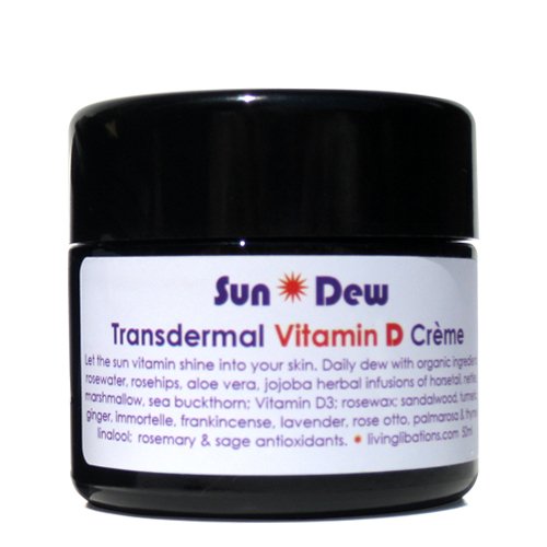 -. Binding : Misc. -. Brand : Living Libations -. EAN : 0741755269051 -. Feature : Sun Dew Is A Unique Formula That Delivers Pure Botanicals, Potent Vitamin D (2000 IU Per Application On Face + Over 100,000 IU Per Jar) To Revitalize, Hydrate & Sustain Your Skin's Healthy Glow / Vitamin D Plays A Vital Role In Skin Cell Development + Repair, As Well As Revitalizing Your Skin's Immune System & Helping To Eliminate Free Radicals That Can Cause Premature Aging / An Excellent Way To Get Vitamin D Transdermally / Organic / Wildcrafted Ingredients / Paraben Free, Sulfate Free, Cruelty-free -. IsAdultProduct : 0 -. Label : Living Libations -. Manufacturer : Living Libations -. MPN : 9785749 -. PackageQuantity : 1 -. PartNumber : 9785749 -. ProductGroup : Beauty -. ProductTypeName : BEAUTY -. Publisher : Living Libations -. Size : 50 ml / 1.69 oz -. Studio : Living Libations -. Title : Living Libations - Organic / Wildcrafted SunDew Transdermal Vitamin D Creme (50 ml / 1.69 oz) -. UPC : 741755269051