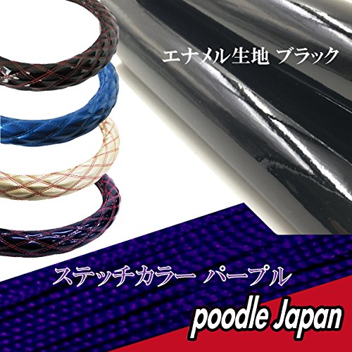 -. Title : MADE IN JAPAN 日本製 ハンドメイド 外径 (36-37cm) ハンドルカバー エナメル ダブルステッチ ブラック&パープル TBH-EN0107-S トラック用品 軽自動車 乗用車 TBH-EN0107-S