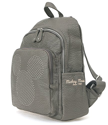 -. Feature : Trim/Embellishments: SOFT FAUX LEATHER CASUAL VINTAGE DAYPACK BACKPACK BAG with MICKEY MOUSE character shape rhinestone / perfect for day trip or school / Closure: cute mickey multi-purpose backpack with zipper closure / Pocket: 4 exterior/ 2 interior / Handles/Strap: carry handle with adjustable shoulder straps / Additional features: solid color simple daypack with mickey mouse patterned lining inside
