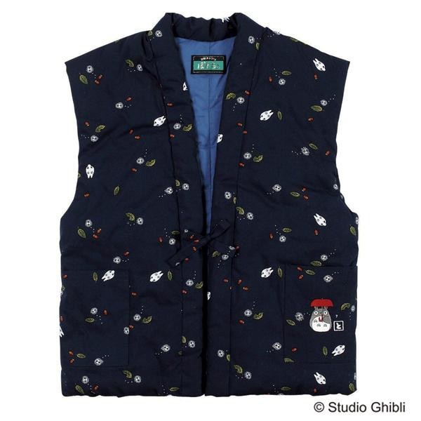 ポケット部分にトトロの刺繍が施された、あたたかいチョッキ型のはんてんです。