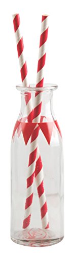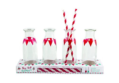 Party Partners Design Glass Milk Bottles with Straws, Set of 4