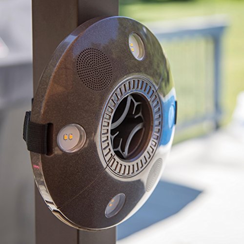 Patio Mate clamps to any standard umbrella pole, then eight LEDs provide your patio table with after-dark illumination, delivering over 150 lumens of warm light.