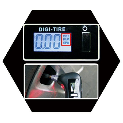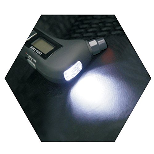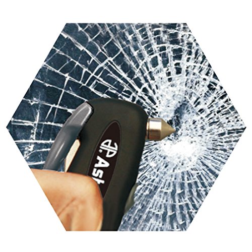 - Feature : Designed to measure tire pressure and read PSI, BAR, and KPA through a durable metal nozzle / Pressure is displayed on a bright backlit LCD screen / Constructed with a steel window escape hammer that quickly deploys at the flip of a switch, and a recessed blade to cut through seatbelts / Constructed with a bright LED flashlight for nighttime emergencies, and a red LED light to reveal the valve stem in poorly lit situations / Powered by two AAA batteries (not included)