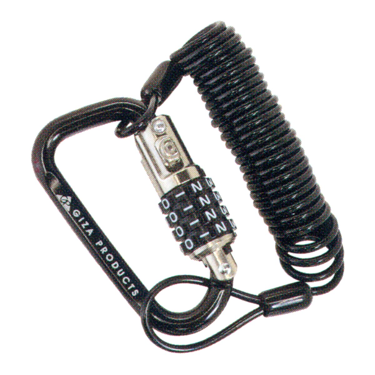 A set of carabiner type combination lock and φ 3 mm × 1,800 mm coil cable that can be set to your favorite 4 digit number.