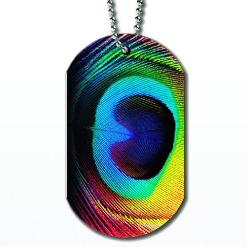 -. Title : Peacock Feather - Dog Tag Necklace
