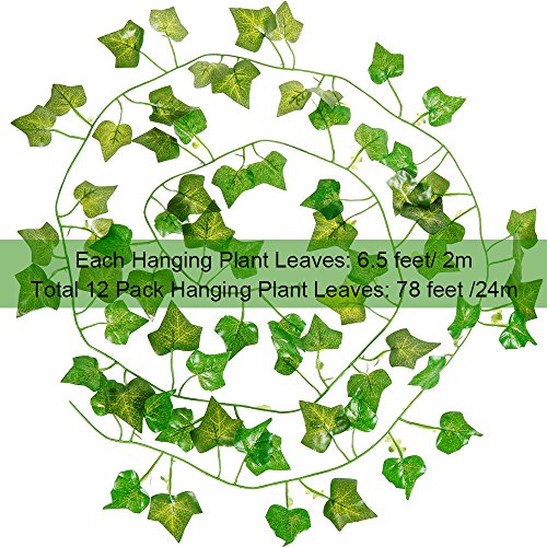 Anpro 12 Pcs 78.7 Feet Artificial Vine Leaves Fake Ivy Leaves Vine Hanging Ivy Plant Decorative Home Garden Wedding Decoration