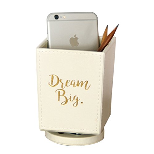 TINTON LIFE PU Spinning Desk Organizer Pen Holder Makeup Brush Container Remote Control Storage Desk Accessories, White