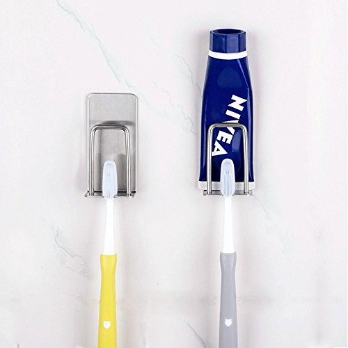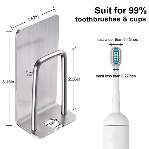Wall Mounted Toothbrush Holder with Self Adhesive - Stainless Steel Toothbrush and Gargle Cup Holder (2 Pcs/4 Pcs) (4 Pcs)