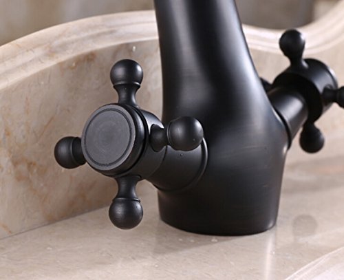 -. Feature : Function: Bathroom Sink Faucet / Material:Solid Brass; Finish:Oil Rubbed Bronze / Faucet Total Height:210mm(8.26"); Spout Height:120mm(4.72") / Spout Length:110mm(4.33") / With two pipes for hot and cold water