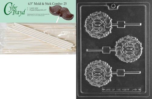Cybrtrayd 45St25-L041 90 Lolly Letters and Numbers Chocolate Candy Mold with 25-Pack 4.5-Inch Lollipop Sticks