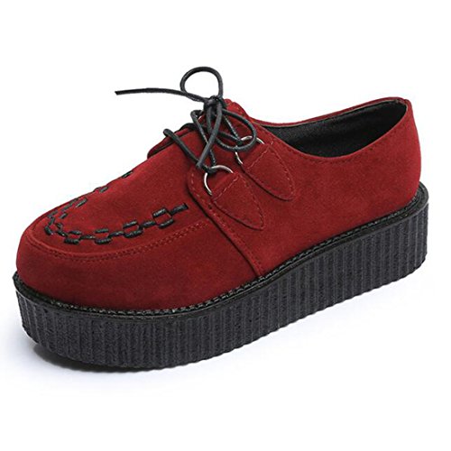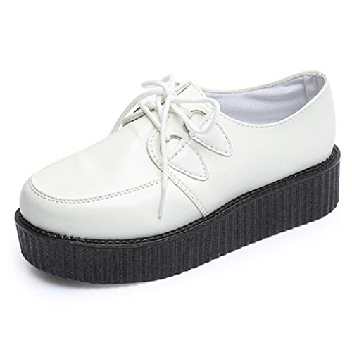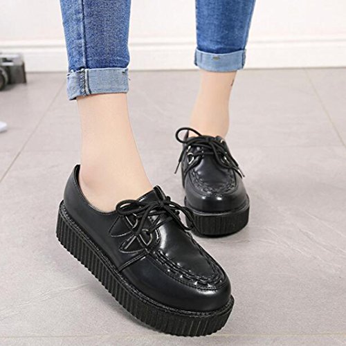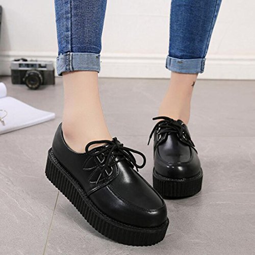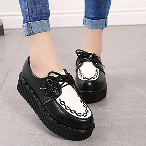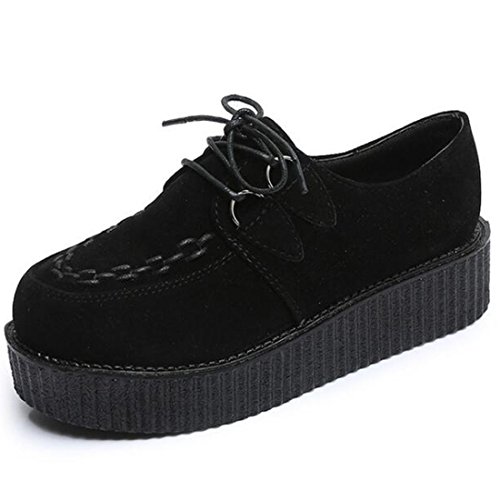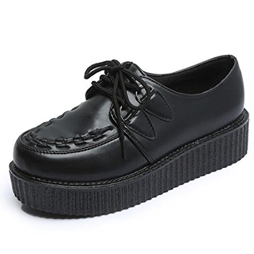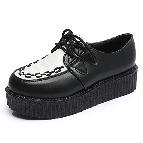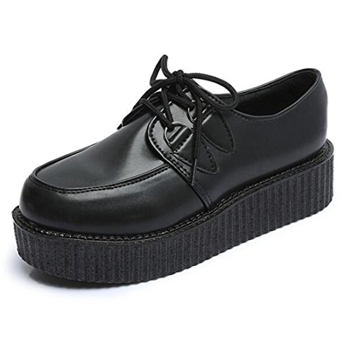 COVOYYAR Women's Lace Up Round Toe Platform Flats Creepers Thick Sole Shoes