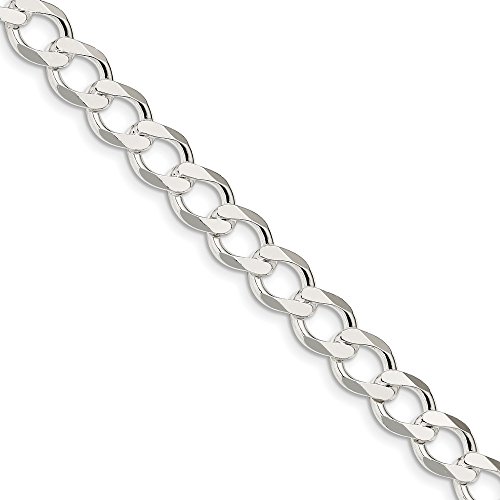 Sterling Silver 9.8mm Polished Flat Curb Chain Bracelet - 9 Inch - 21.1 Grams in Sterling Silver - JewelryWeb Style: QTB321829SS - FREE gift-ready jewelry box