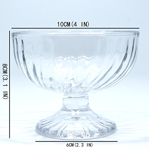 Terya Set of 4 Glass Footed Dessert Bowl Ice Cream Bowls Ice Cream Cup (Round A)