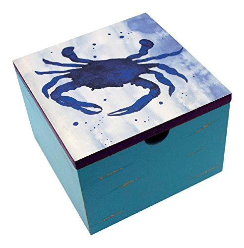 -. Title : Blue Crab Wood Box with Hinged Lid