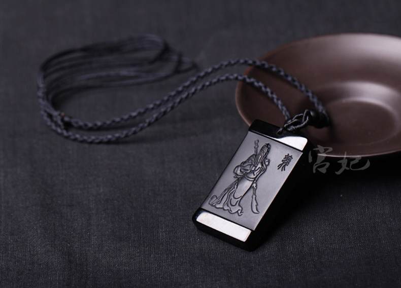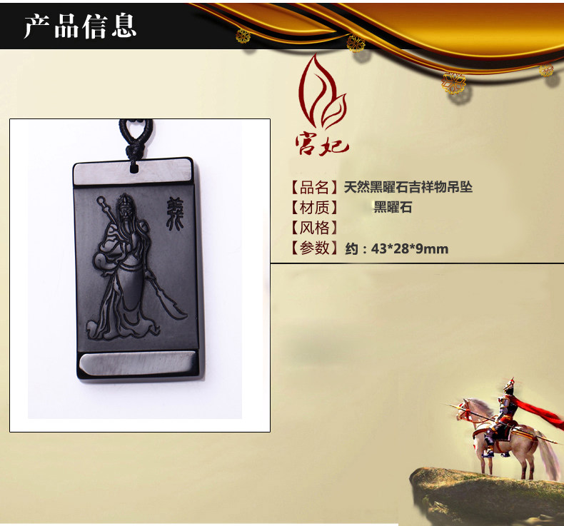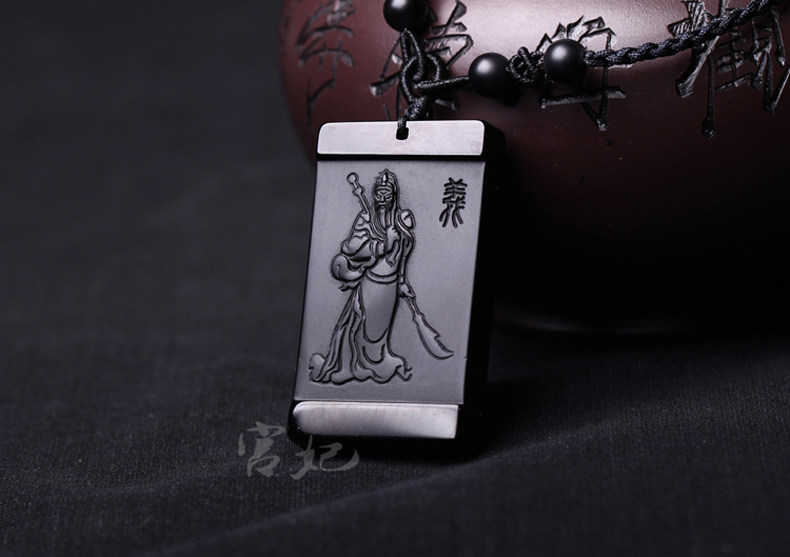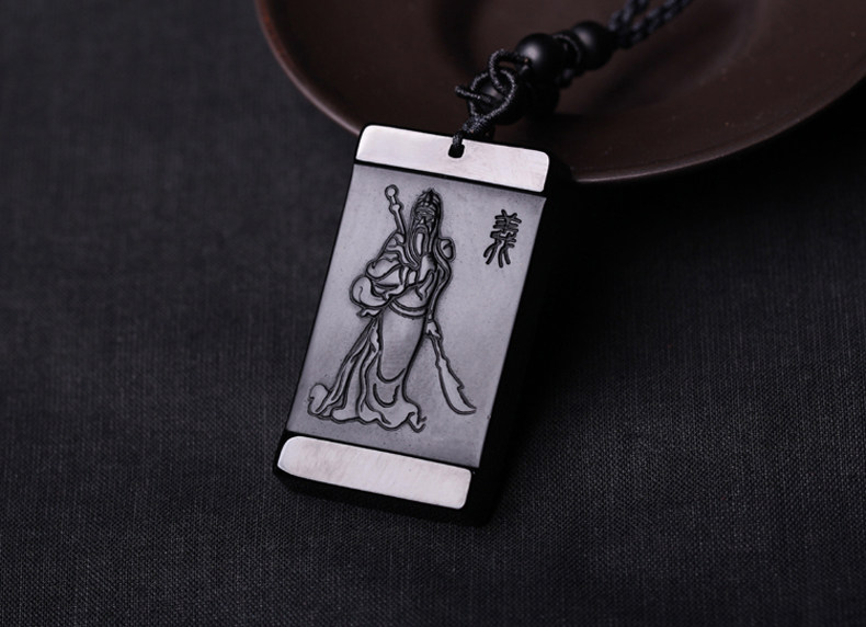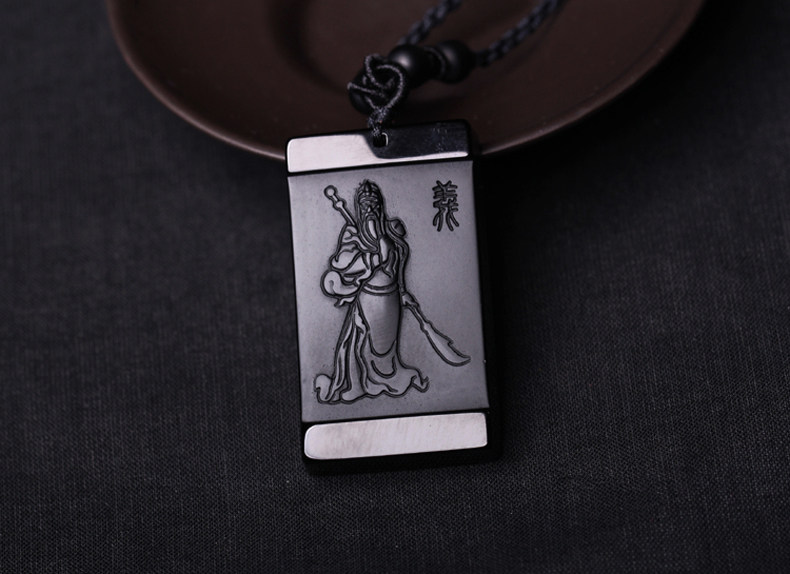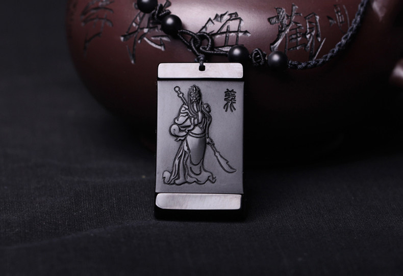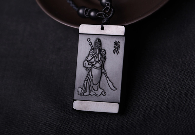 开光天然磨砂黑曜石关公吊坠男士项链 武财神貔貅女款