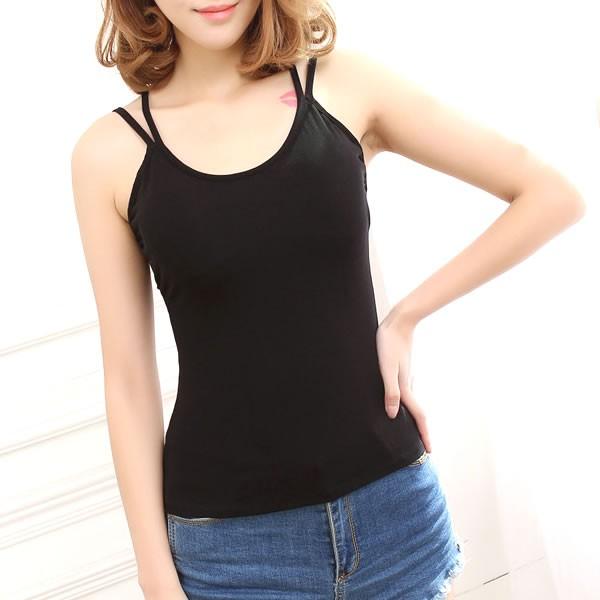 | ダブルストラップ バック クロス キャミソール インナー 黒 ブラック 無地 パッドあり 【インナー キャミソール レディース 女性 黒 ブラック black インナー inner 下着 camisole cawaii ロンデルブラック セクシー】 | |