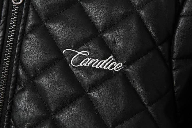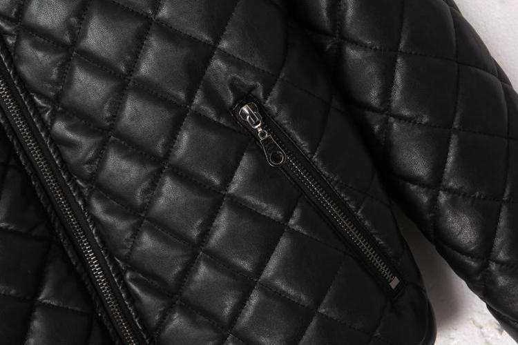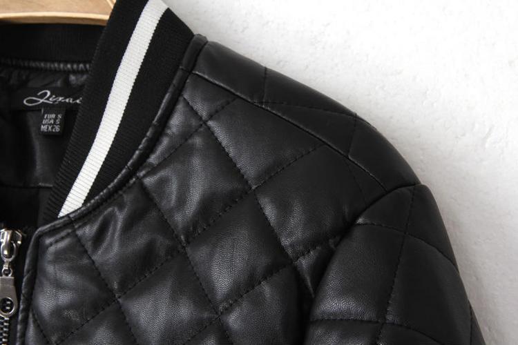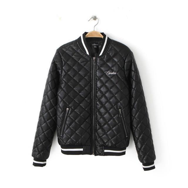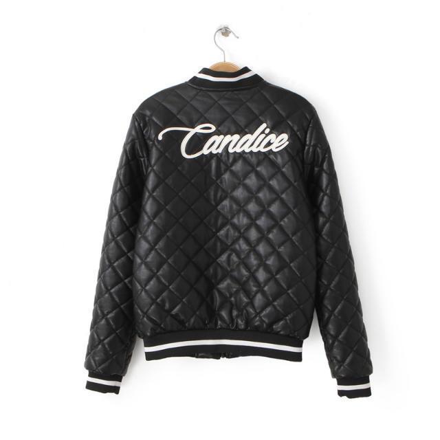 Winter New European and America Style Female Cotton Leather Coat Long Sleeve Diamond PU Outerwear with Letter Back in Stock