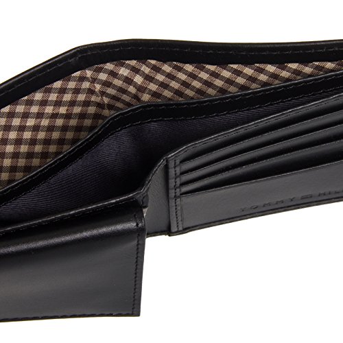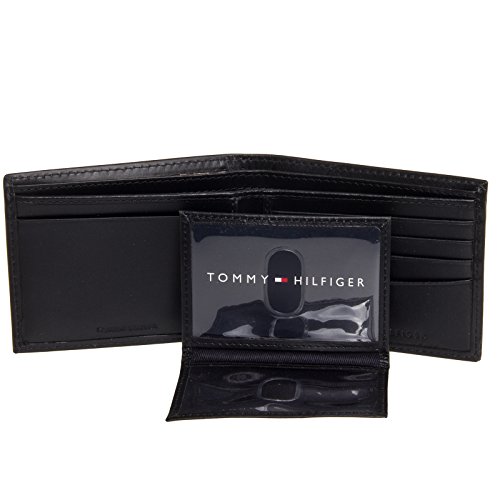 Carry your cash in style with this Smooth Leather Passcase Bifold Wallet from Tommy Hilfiger. Constructed of soft, genuine leather, this bifold opens to reveal a spacious interior sure to keep you properly organized. 4 card slots, 2 slip pockets, removable passcase with thumb-glide ID holder, photo insert and fully lined bill compartment give you plenty of options when storing your everyday necessities. The exterior features a wooden Hilfiger nameplate, so everyone knows who you carry. Presented in a gift box. Measures 4.37" x 3.5" x 1" (when closed).Feature