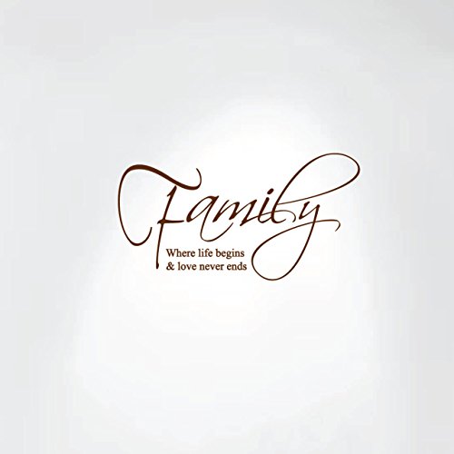 Family Where Life Begins and Love Never Ends Wall Decal Art Saying Home Decor Sticker #1258 (19" wide x 10" high, Matte Brown)