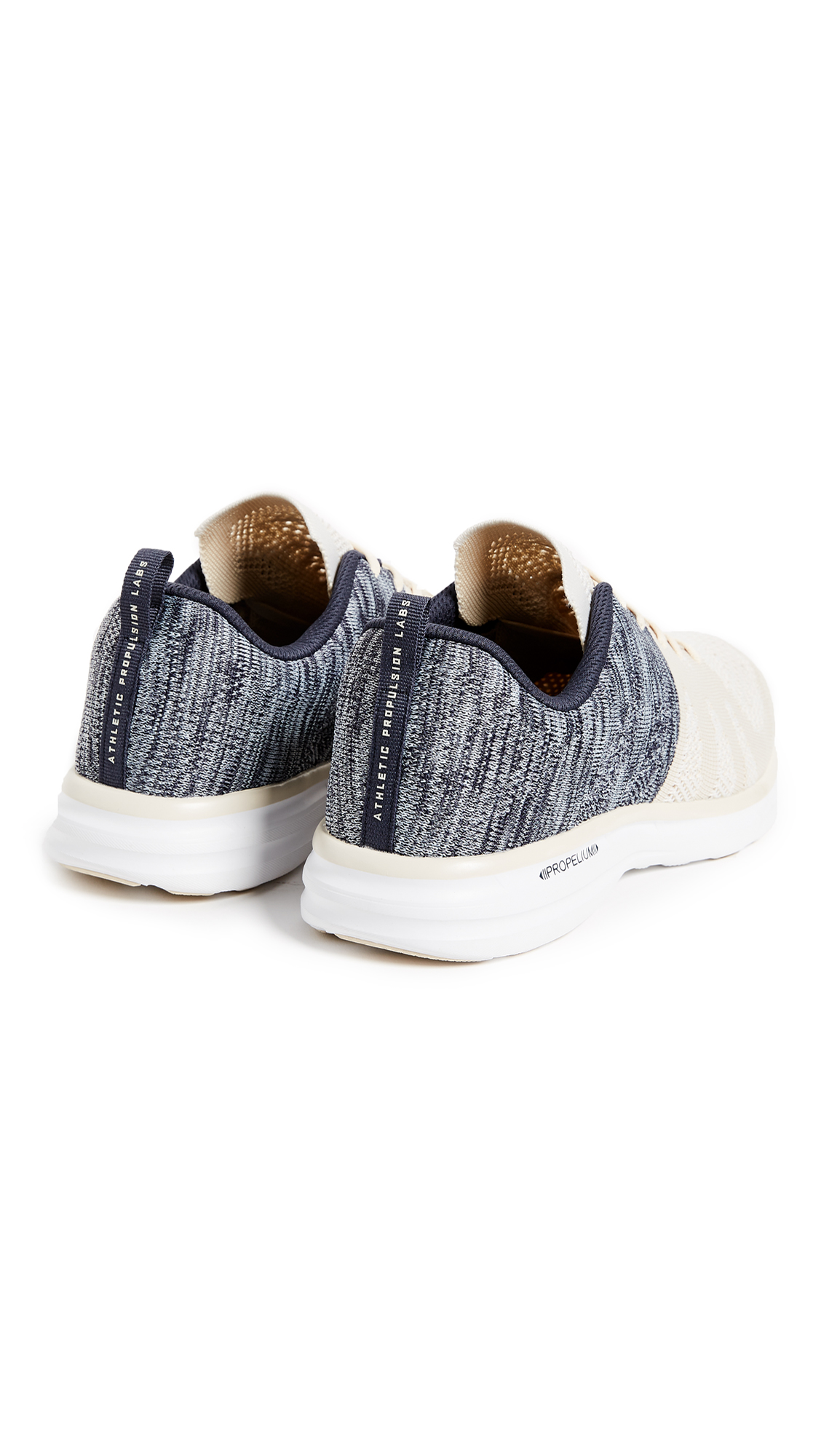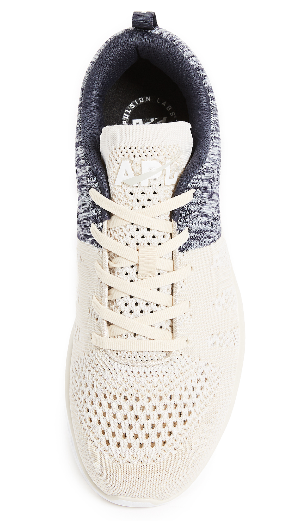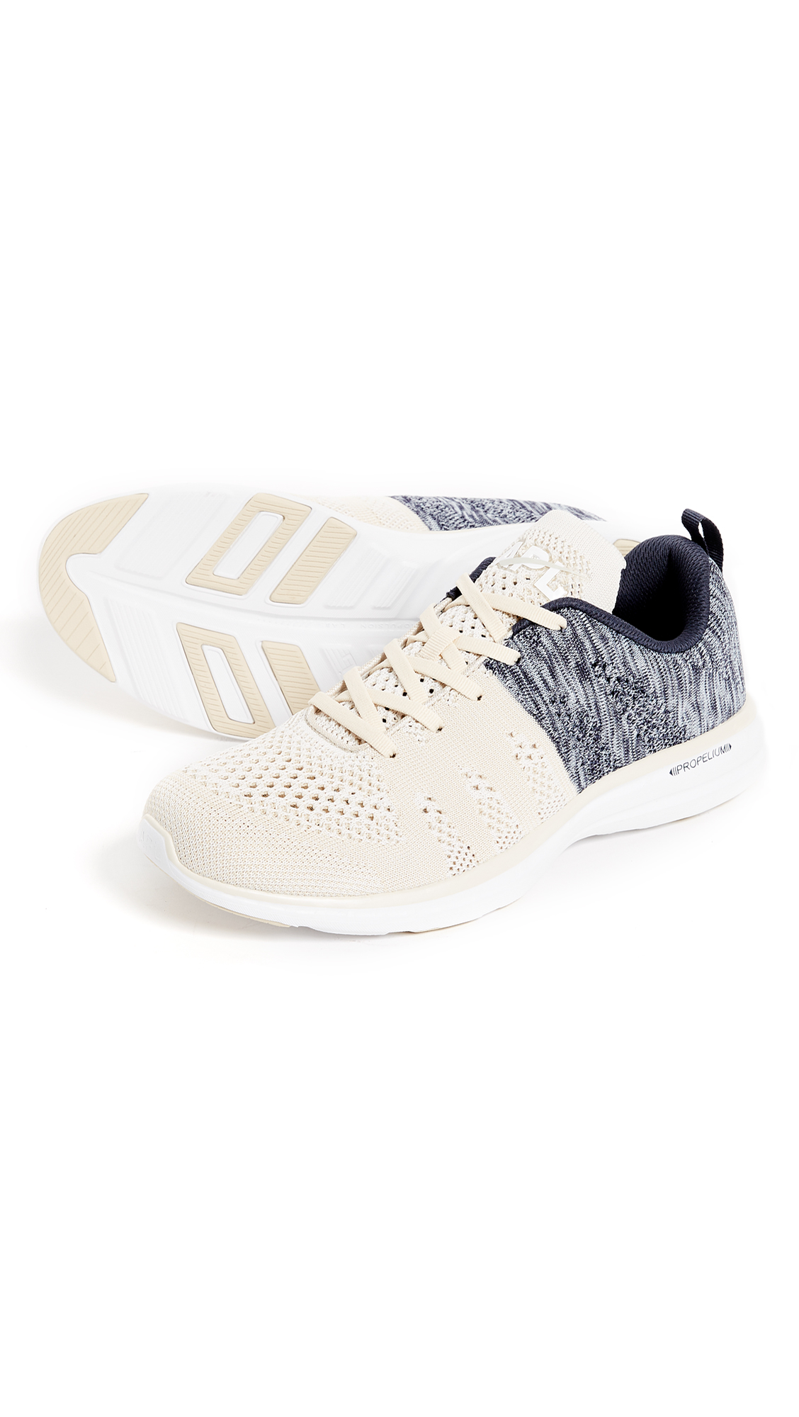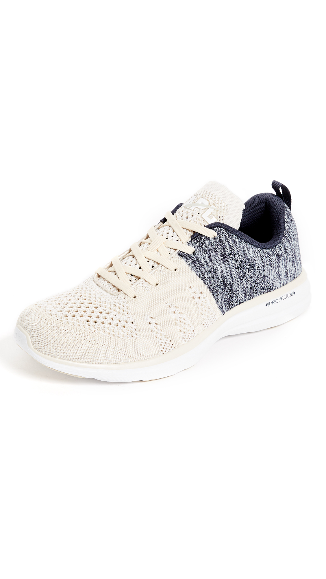 Lightweight APL: Athletic Propulsion Labs running shoes with a textured double-knit upper. The outsole features the brand's lightweight Propelium compound. Logo lettering details the tongue. Padded cuff and insole.