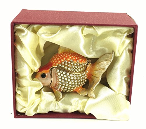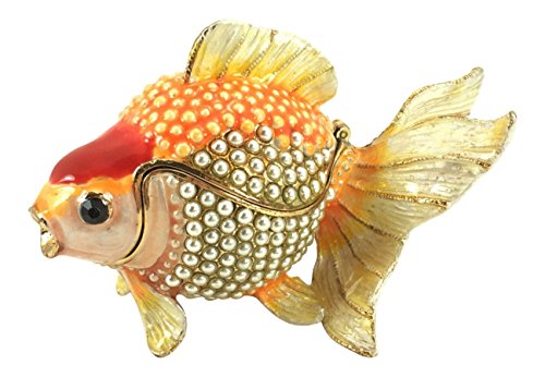Enameled Koi Goldfish Trinket Box by Kubla Craft, Accented with Imitation Pearls, 3.5L