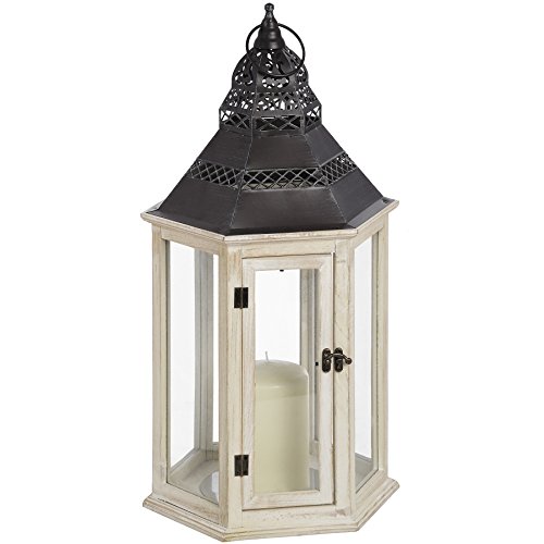 -. Feature : Wooden candle lantern with glass windows and octagonal design. / Detailed tin upper. / Size (approx): Height - 23in x Width - 12in x Depth - 11in.