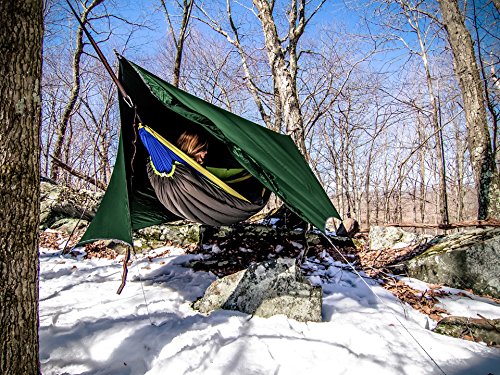 A WEATHERPROOF FORTRESS - Part rain tarp, part luxurious waterproof fortress, the HouseFly Rain Tarp features silicon-impregnated nylon sides that keep you warm, dry and comfortable while you lounge in your hammock