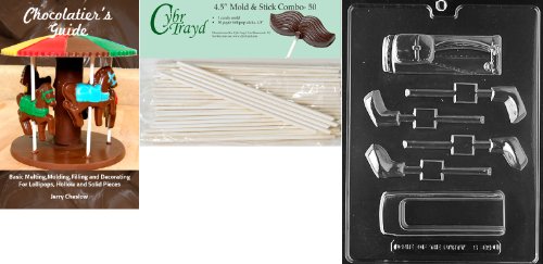 Cybrtrayd 'Golf Bag and Clubs Lollies' Sports Chocolate Candy Mold with 50 4.5-Inch Lollipop Sticks and Chocolatier's Guide