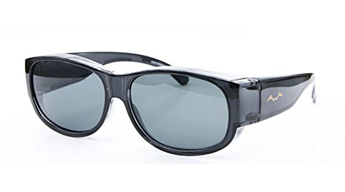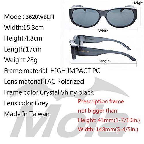Product Description MOLA Suncover polarized sunglasses are the famous brand in Taiwan. MOLA Polarized fit over sunglasses clip on prescription glasses medium unisex-3620Wbl Frame color :Crystal Black Lens color : Grey Head Size: Medium (fits adult face) MOLA polarized sunglasses fit over glasses uses polarized lens to block 100% of ultraviolet rays. Comfortably fit over most small to medium sized prescription glasses. MOLA polarized lens is scratch resistant Ultra Lightweight Case and Cloth Included Made in Taiwan All of MOLA polarized sunglasses meet with US ANSI Z80.3 AND EU ISO 12312-1:2013 Standard. 0